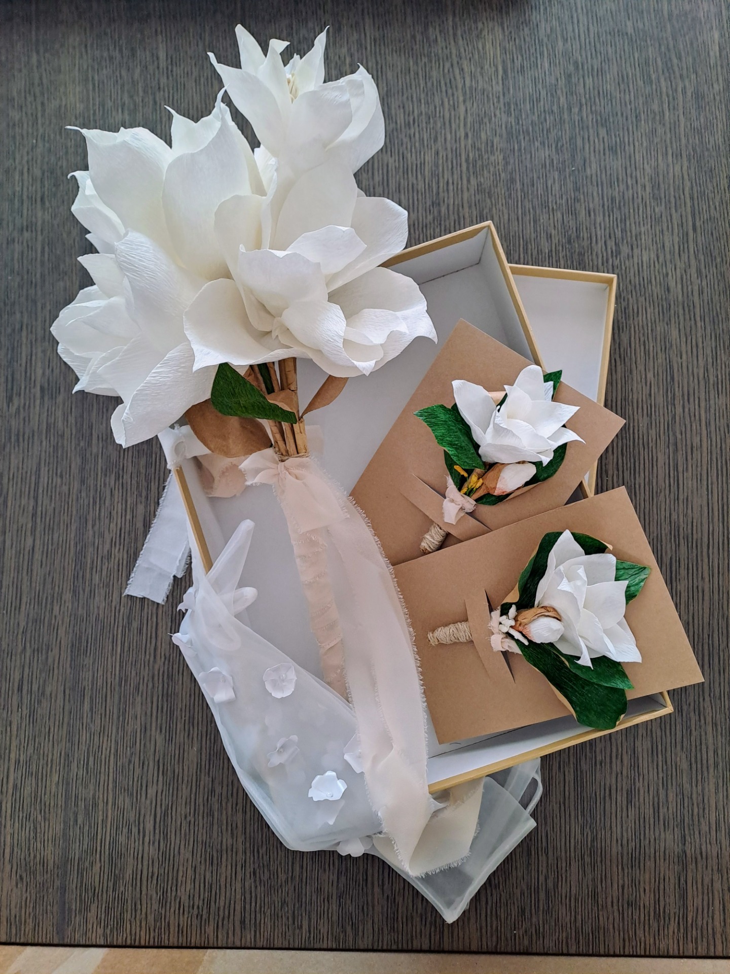 Fiore di Magnolia per questo Bouquet e Bottoniere.